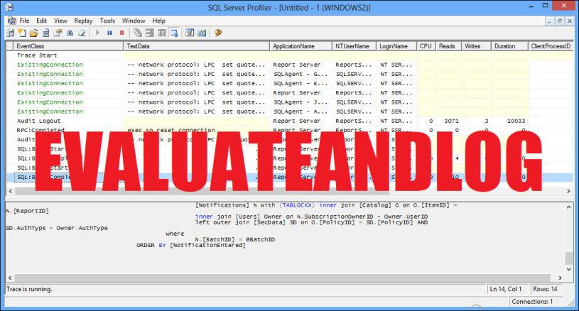 Measure 2 = EVALUATEANDLOG(SUM(‘Table'[Column2]))Place this meausre into a visual and your trace should catch the data generated by EVALUATEANDLOG. You can force a refresh of any visuals on the page using the Performance analyzer pane and this will also be captured within the trace. Within the trace window in SQL Server Profiler, find the line corresponding to an EventClass of DAX Evaluation Log and select it to view the output of EVALUATEANDTRACE as shown below: